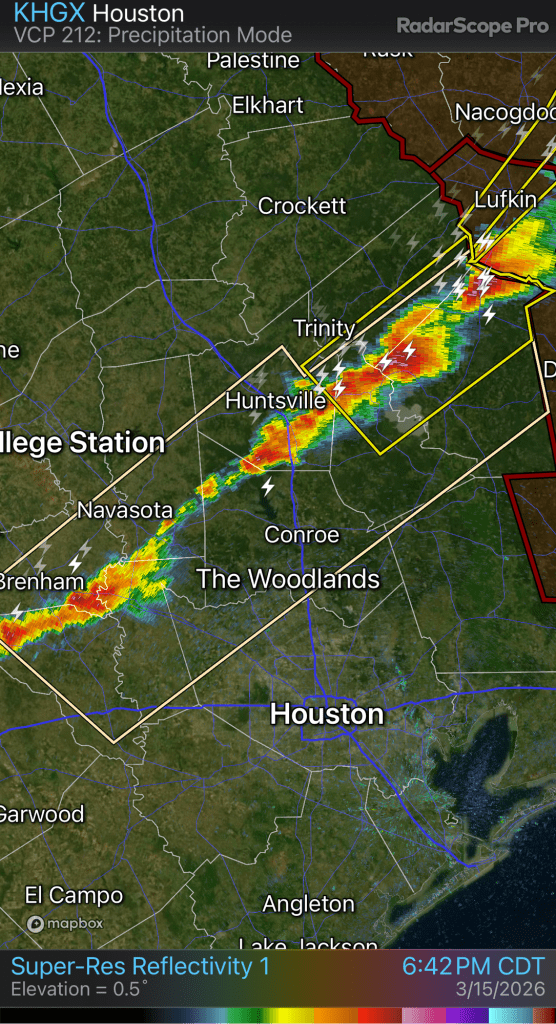 We have a broken line of storms approaching the Houston area along the cold front.